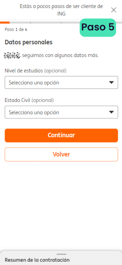 ING cuenta con una de las mejores apps móviles de bancos. Sus usuarios la han valorado positivamente en las tiendas de aplicaciones, alcanzando un 4,1 en Google Play y un 4,8 en Apple Store. A través de ella, también podrás abrir una cuenta ING sin mayor complicación y siguiendo los mismos pasos que para la versión web, excepto los dos siguientes puntos: